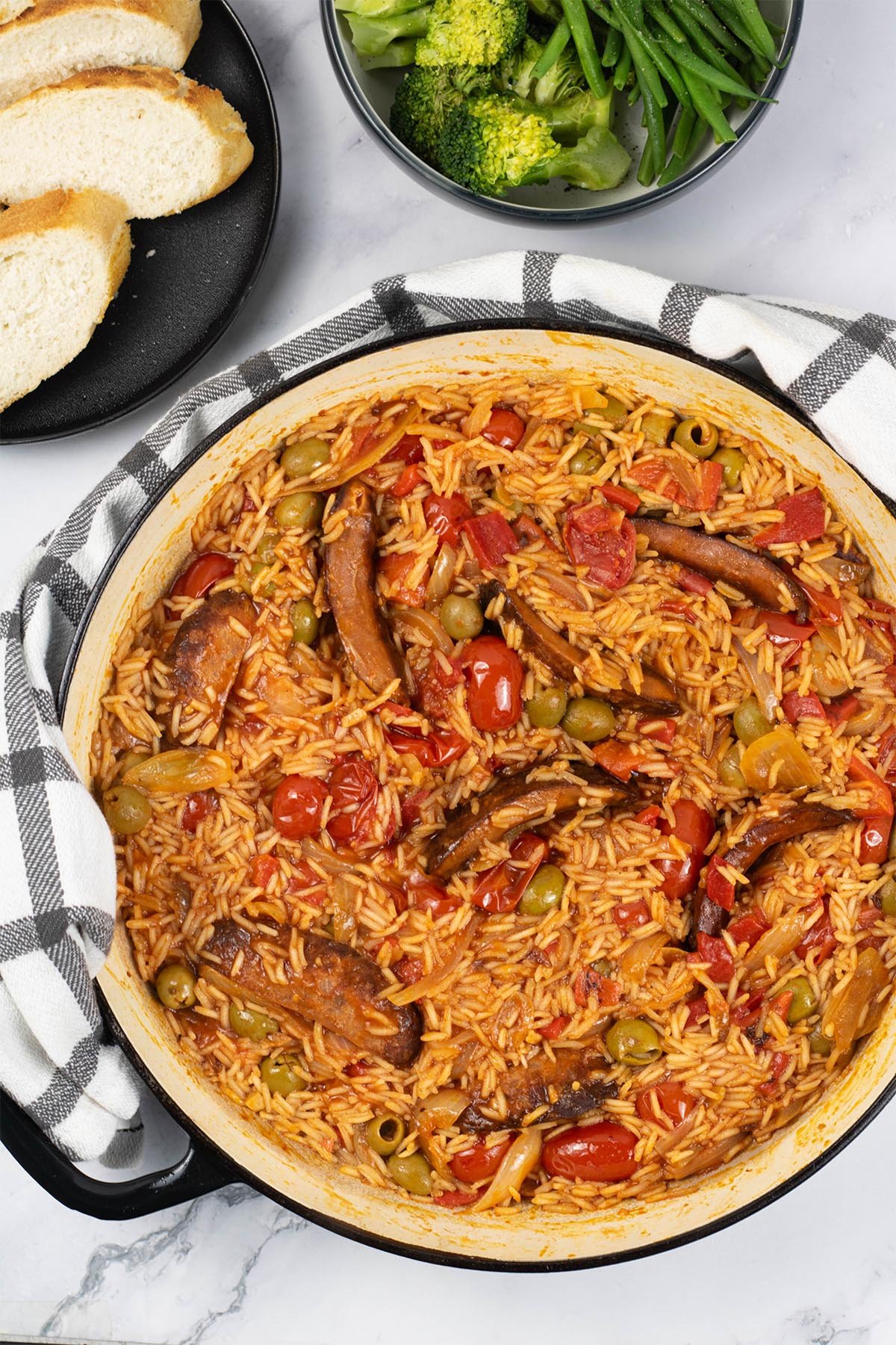 Enjoy Spanish flavours of chorizo and sweet smoked paprika combined with basmati rice, olives and cherry tomatoes.