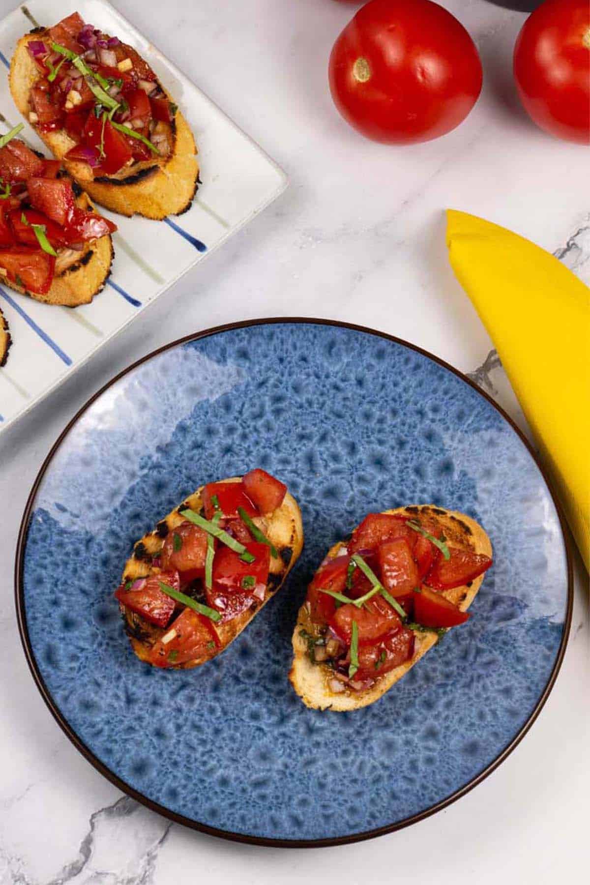 This classic tomato bruschetta features juicy tomatoes, garlic, and basil on crisp toasted bread. A quick, easy and flavourful starter or light lunch!