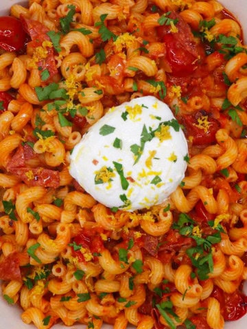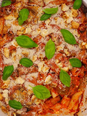 Lamb Meatball, Red Pepper and Feta Rigatoni Bake