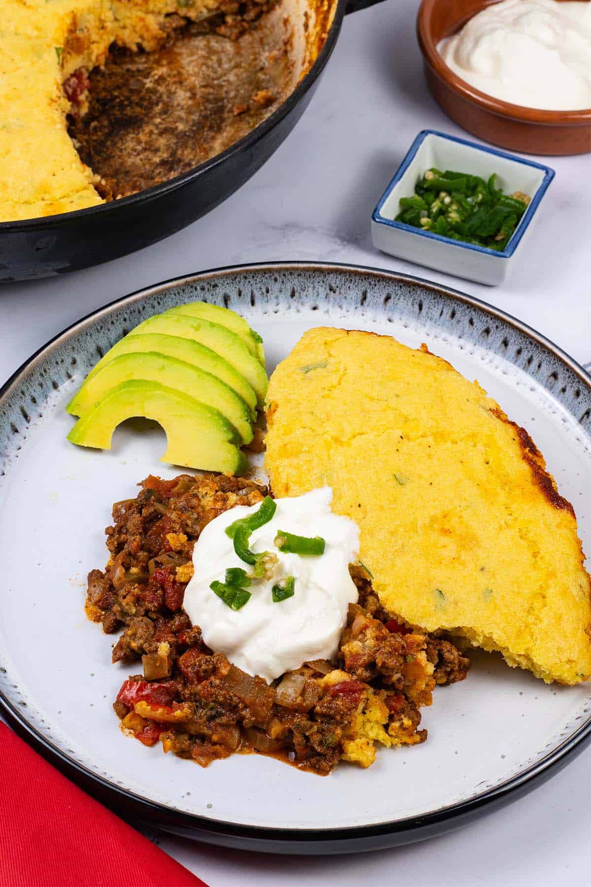 It's a perfect meal to enjoy any day of the week. The comforting beef chilli is made into a pie with a yummy cheesy chilli cornbread topping. Serve with extra jalapeños and a dollop of sour cream on the side...it's full of flavour and delicious - you'll want more!!