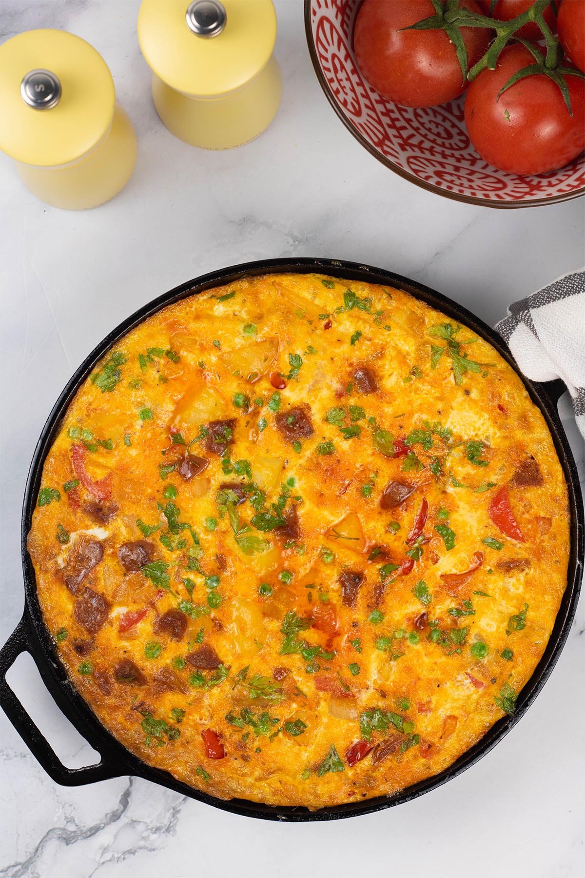 - The ingredients for this chorizo frittata recipe can easily be reduced if you're cooking for less people...just use a smaller ovenproof frying pan.
