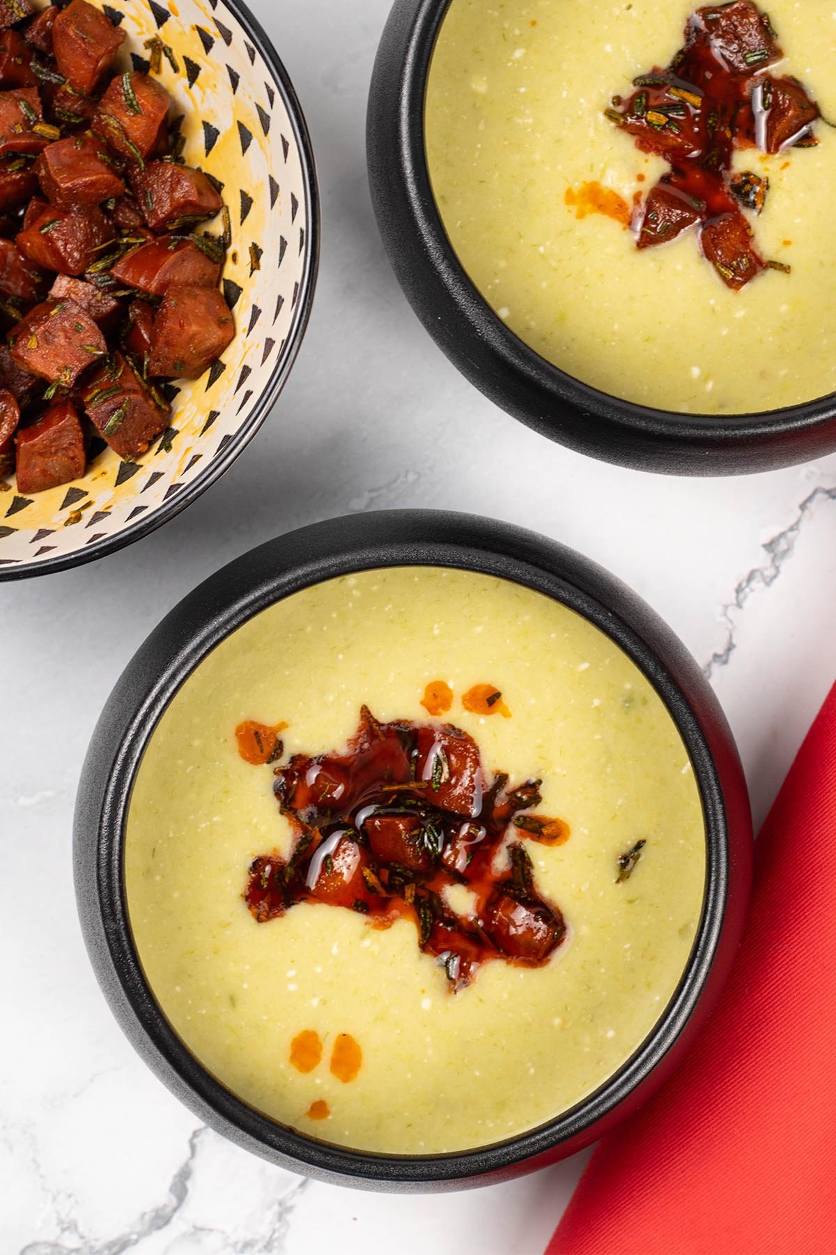 This leek, butter bean and crispy chorizo soup is a rich and comforting bowl of flavour. Sweet leeks and creamy butter beans create a hearty base, while crispy chorizo adds a smoky, savoury kick.
