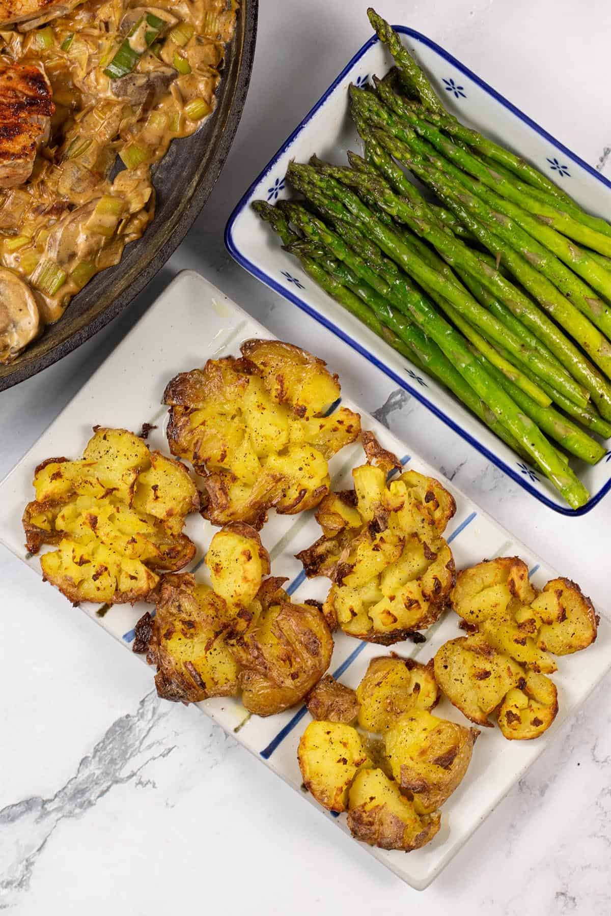 - This roast smashed baby potatoes recipe is easily adapted if you’re cooking for less or more people.